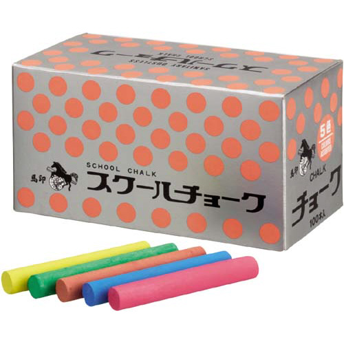 スクールチョーク 5色混色 100本入 赤・青・黄各25本、緑12本、茶13本