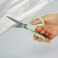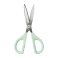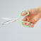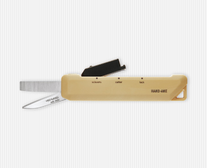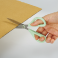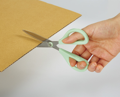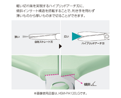 ハンドルは手が小さくても持ちやすい設計に、刃は粘着テープを切っても糊が付きにくい仕様になっています。また、切れ味が軽く、利き手を問わず薄いものから厚いものまでラクに切ることができます。
