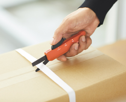 ダンボールなどの開梱に便利なカッターモードと、タグやPPバンドの切断に便利なハサミモードを搭載しています。片手でスライドするだけで簡単に切り替えられます。