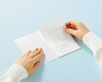 メモや自分なりのまとめ、覚えておきたいこと、解説などを書き足すのに便利です。ミシン目入りで、きれいに折りたためるのも特徴です。