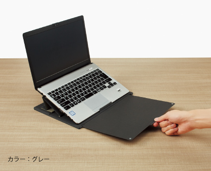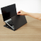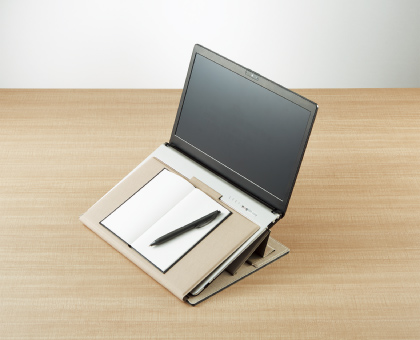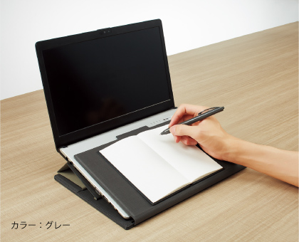 スライドボードを引き出して折り返せば、キーボードに干渉しにくいノート筆記台になります。スタンドは15°・25°の2段階に調節できます。