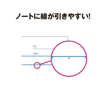 独自の原紙基準でより快適な書き心地を追求しています。目印付きで線が引きやすい、背が破れにくくタイトルが書きこめます。